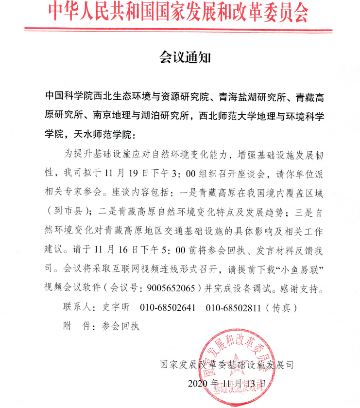 受国家发改委基础司的邀请,11月19日国产精品无码AⅤ在线观看博士刘宝康通过在线视频方式参加了由国家发改委基础司组织召开的青藏高原自然环境变化对青藏高原地区交通基础设施影响的专家座谈会。这是刘宝康博士继2019年2月赴北京参加由国家发改委基础司组织召开的可可西里盐湖水患问题专家座谈会以来,再次受邀参加由国家发改委牵头组织的专家座谈会。