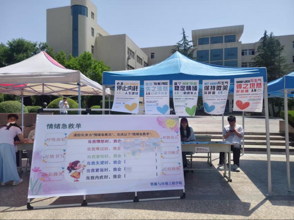 5月24日——25日在学校学生工作处的统一规划下,我院在学校广场举办“识别情绪、解码压力”为主题的心理嘉年华活动,活动共包含"情绪盲盒"抽取、情景模拟、互助解忧等环节。活动吸引100余名学生参与。
