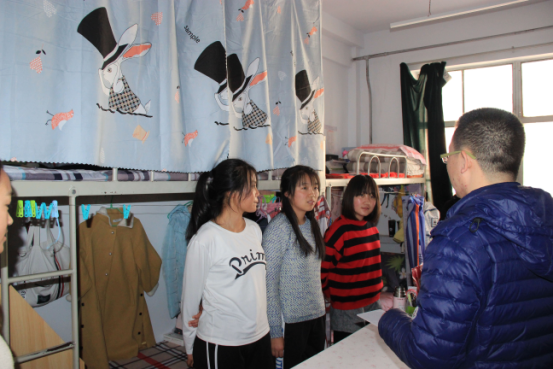 在辅导员张百乐的带领下,检查人员主要针对了床铺整洁,地面卫生,安全问题等情况进行了检查和综合评分,由外宣部成员对宿舍进行拍照。最后,辅导员在每一个宿舍强调了安全用电的重要性。