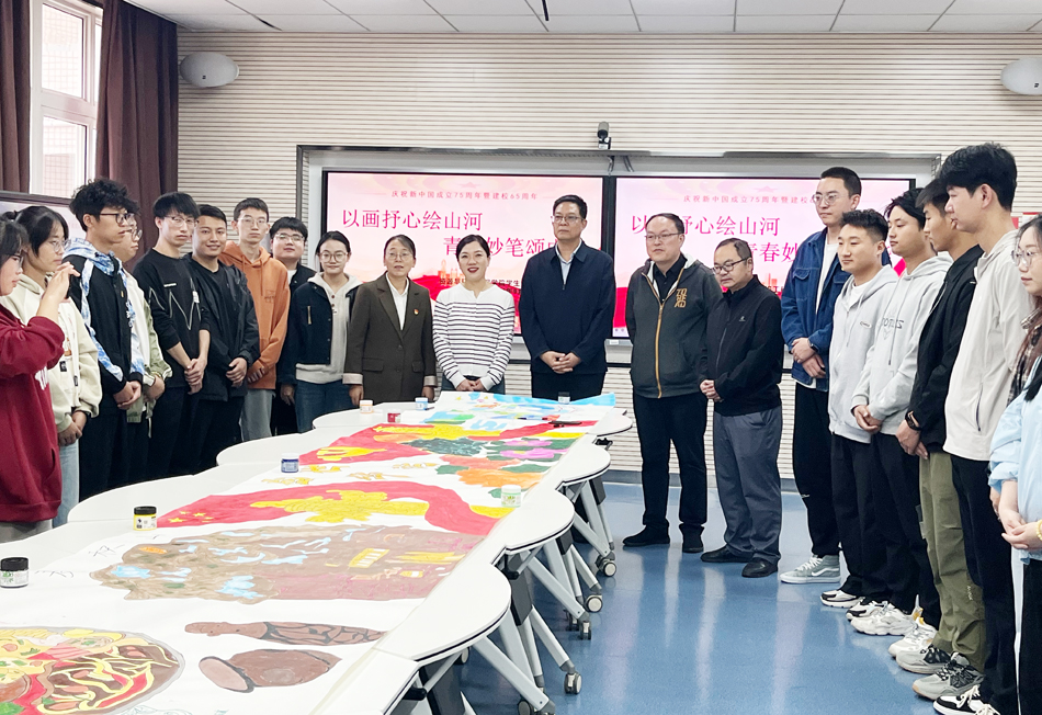 9月29日,国产精品无码AⅤ在线观看在2号教学楼107教室开展“以画抒心绘山河,青春妙笔颂中华”庆祝中华人民共和国成立75周年暨建校65周年主题党日活动。校党委常委、副校长左国防出席活动。